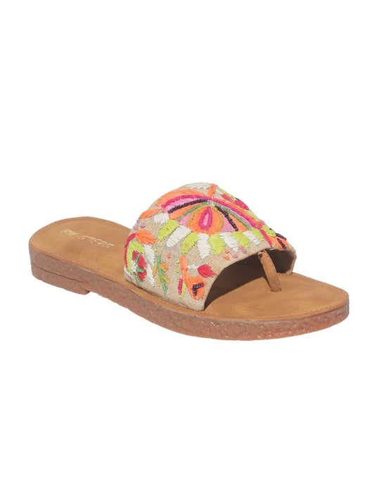 Multi Embroidered Jute Slides