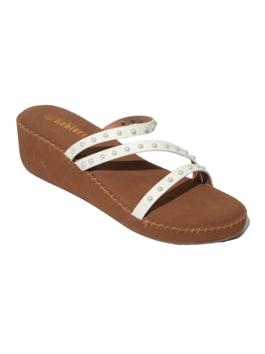 White Beaded Wedge Heels