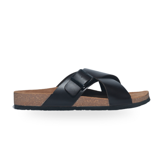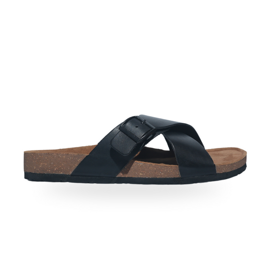 Black Buckle Cross Strap Sandals