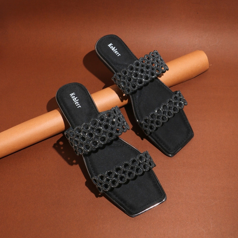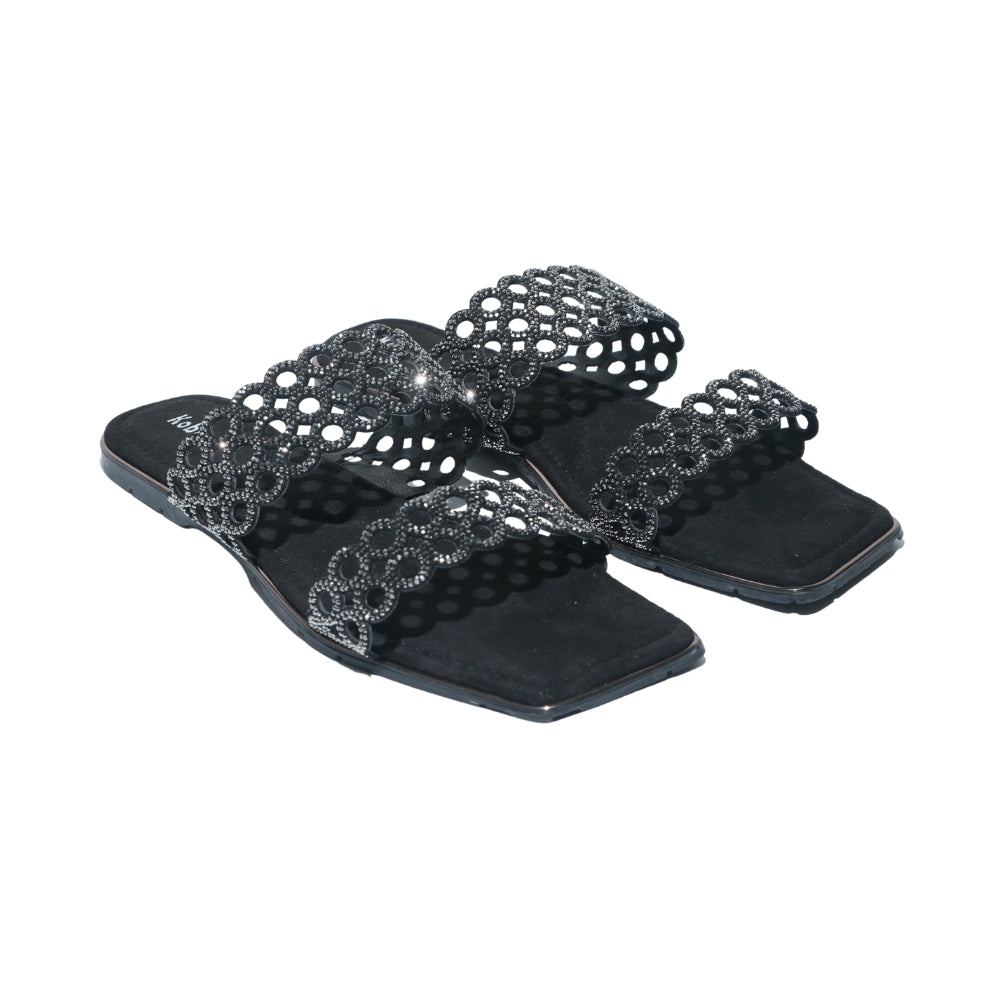 Black Slip-On Flat Sandals